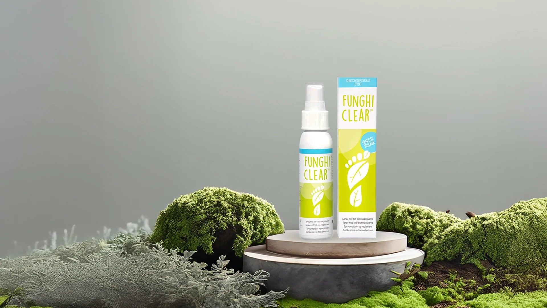 FunghiClear® on sieniä torjuva (antifungaalinen) spray, lääkinnällinen laite (MDR, luokka 1), jota käytetään jalkojen ja kynsien sieni-infektioiden hoitoon ja ehkäisyyn. FunghiClear® sisältää vain luonnollisia, aktiivisia ainesosia. Manukaöljy on tärkein vaikuttava aine, jolla on voimakas sienenvastainen vaikutus. FunghiClear®ia suihkutetaan kynsille ja jaloille kahdesti päivässä, ja sitä voidaan myös suihkuttaa kenkiin muutaman kerran viikossa. Tämä tarkoittaa, että FunghiClear® voi korvata kynsilakat, voiteet ja muut sprayt. Kyseessä on yksinkertainen ja nopea hoitomuoto – vain muutama suihkaus kerrallaan riittää. Kliiniset tutkimukset osoittavat, että FunghiClear® on tehokas, turvallinen ja helppokäyttöinen hoito.